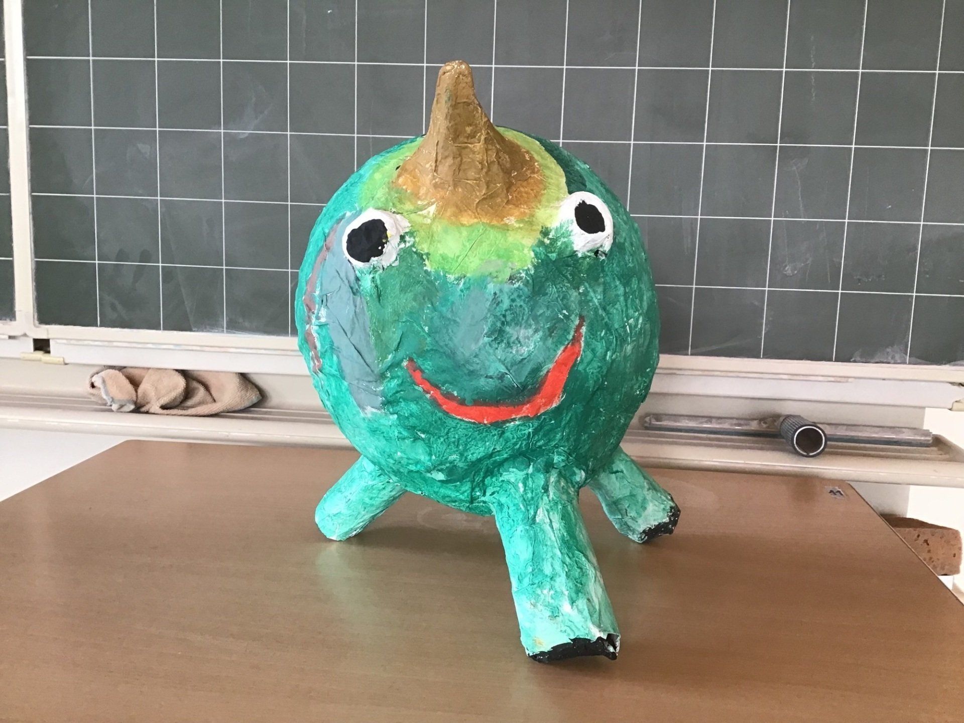 Passend zum Deutschunterricht „Eine Reise ins All – Wir schreiben Fantasiegeschichten aus dem Weltraum“ haben die Kinder der Klasse 4 Fantasiewesen im Kunstunterricht modelliert und gestaltet. Das Projekt begann mit der Sammlung von gebrauchten Alltagsmaterialien wie beispielsweise leeren Milchtüten, Klopapierrollen oder Konservendosen und Luftballons. Aus diesen Gegenständen haben die Viertklässler zunächst das „Grundgerüst“ für ihr Fantasiewesen gebaut und mit Klebeband stabilisiert. Mithilfe von Zeitungspapier und viel glibberigem Kleister haben die Schülerinnen und Schüler anschließend den Körper ihres Wesens geformt. Nun hieß es „Ran an den Pinsel“ und die Kinder haben ihre Fantasiewesen mit bunten Farben „zum Leben erweckt“. Die Kinder konnten unter Beweis stellen, dass ihrer Fantasie keine Grenzen gesetzt sind. Von lustigen Kombinationen wie „Einhorn-Engel mit Flügeln“ oder „Superhelden-Hund“ über gruselige Kreationen wie „Zombie-Olchie-Bären“ bis hin zu bekannten Figuren wie den „Minions“ oder der „ISS“ ist alles dabei. Wie auf dem Foto zu erkennen ist, haben die Fantasiewesen der Viertklässler zusammen viel Spaß und sie freuen sich schon auf ihr erstes Abenteuer im All. Was sie dort wohl erleben werden?