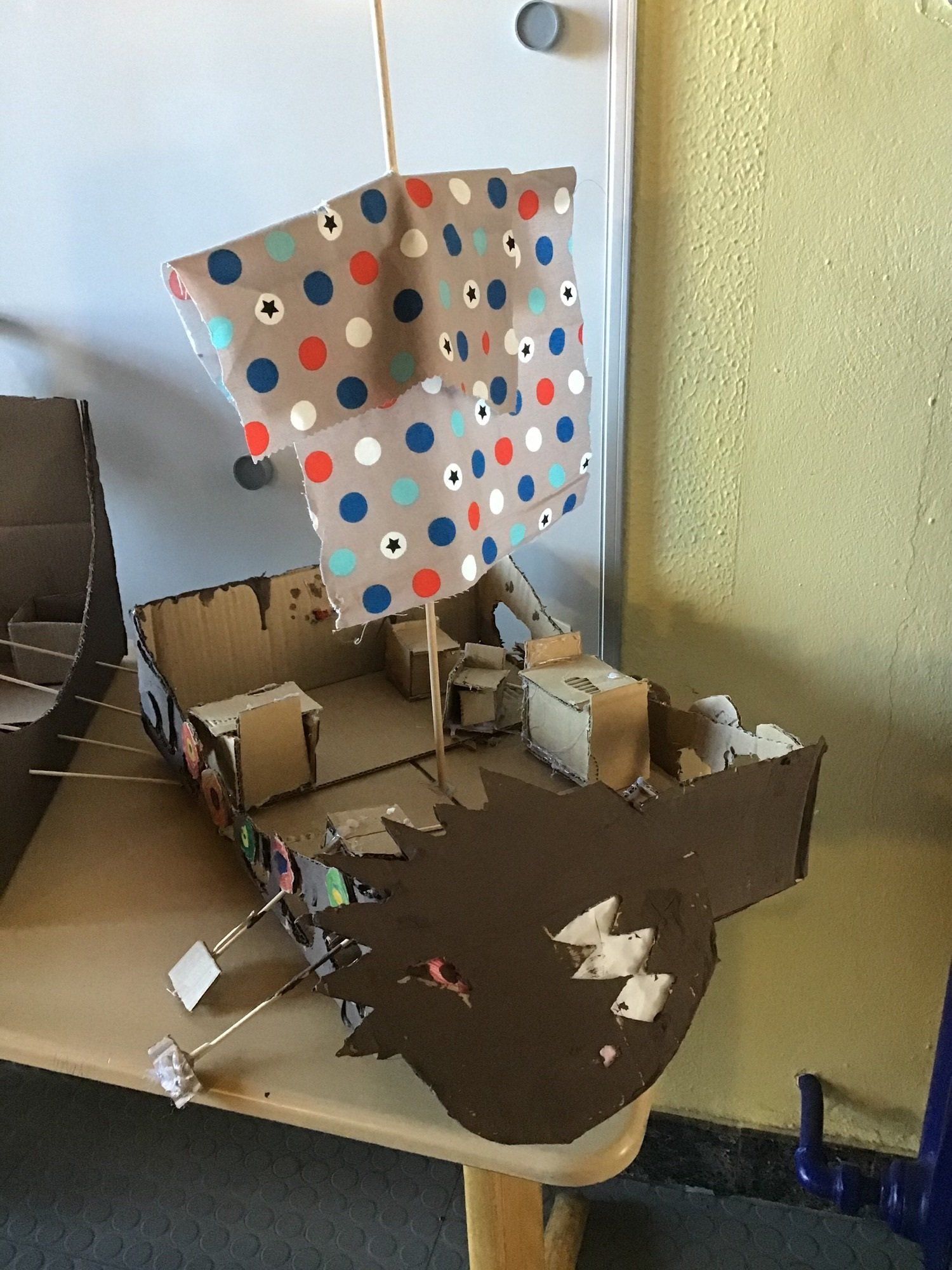 Schiff ahoi! – Die Klasse 3b hat ein Projekt zum Thema „Wikinger“ durchgeführt. Im Sachunterricht haben die Kinder alles Wichtige über das Leben der Wikinger erfahren. Sie sind nun richtige Experten für die Kleidung, den Schmuck, die Waffen, die Schutzausrüstung und die Schiffe der Wikinger. Im Kunstunterricht haben die Kinder ihr Wissen kreativ umgesetzt und eigene Schiffe, Helme, Schwerter, Schilder und Armbänder aus Alltagsmaterialien wie Pappkarton, Stoff, Alufolie, Zeitungspapier und verschiedenfarbigen Perlen gebastelt. Dabei haben die Wikinger-Experten auf jedes kleine Detail geachtet und sogar Playmobil Figuren als Besatzung an den Rudern platziert. Ein großes Segel und ein Mast dürfen natürlich auch nicht fehlen. Der Drachenkopf des Schiffes sieht bedrohlich aus, damit die Wikinger auf ihren Beutezügen gefährlich und unbesiegbar wirken. Das haben die Kinder durch die riesigen scharfkantigen Zähne des Drachen sehr anschaulich umgesetzt. Auf offener See möchte den Wikingern bestimmt niemand begegnen. Wie gut, dass die Wikinger-Zeit vorbei ist und die Klasse 3b eine anschauliche Ausstellung im Eingangsbereich vorbereitet hat. So können alle Schüler*innen und Besucher einen umfassenden Eindruck von dem Leben der Wikinger erhalten.